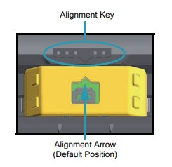 - Open the lid of the printer and lift the tags up to find a yellow slider with a glass dot in center