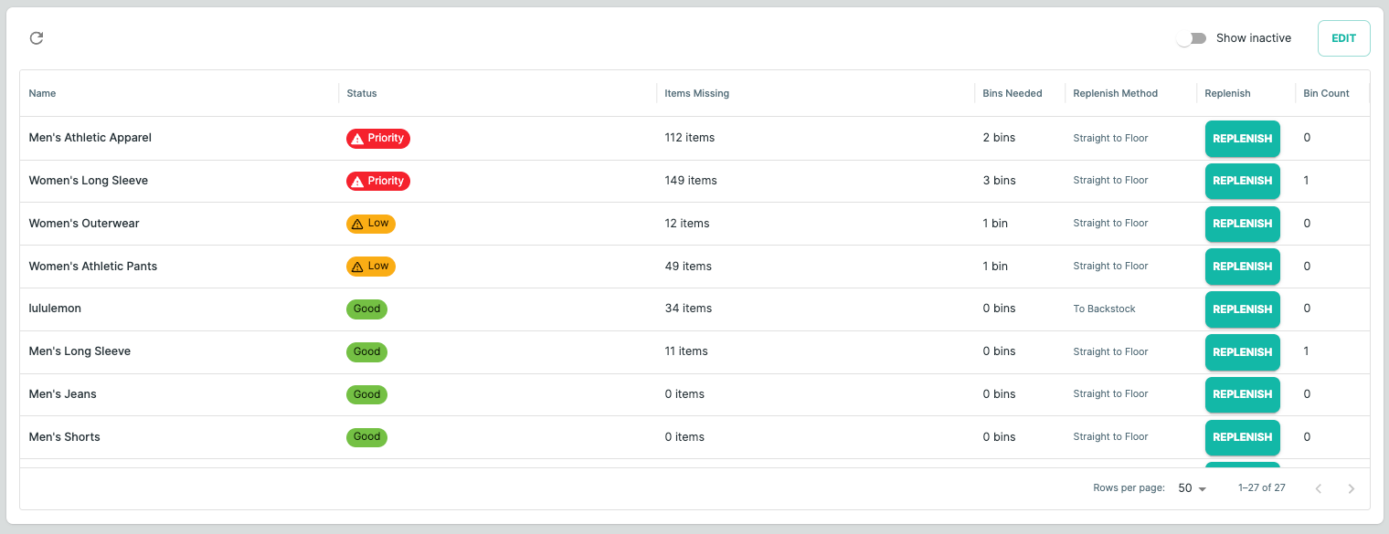 Rack Health also works with the Backstock feature to help teams identify which bins should be pulled to replenish the sales floor.