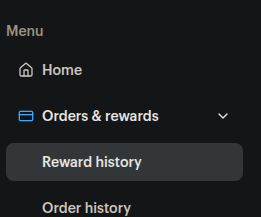 - On the left side of the screen under Orders & rewards select Reward history